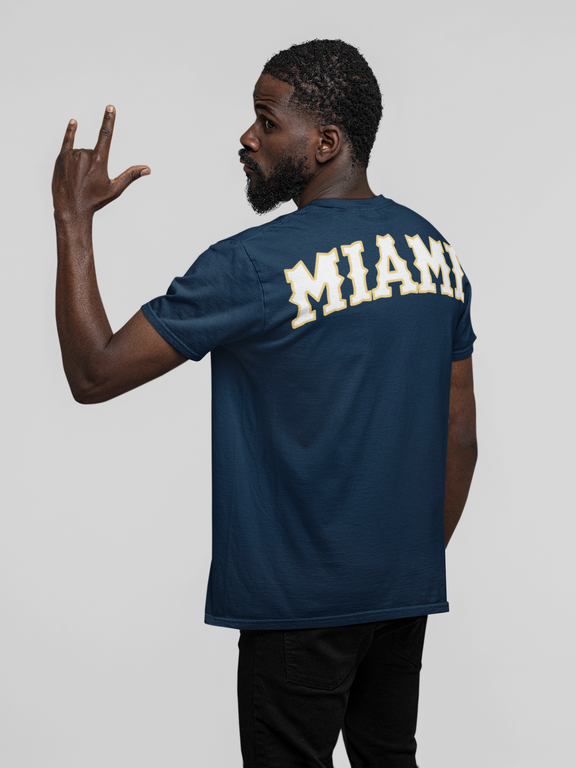 Stings graphic on front, Miami graphic on back. fits true to size.